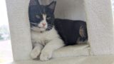 窓用ハンモックも私が座るときに少し邪魔なのでたたんでありましたが、広げてみたらあんみつさんが使ってくれてます。最近はご飯食べた後ここで毛づくろいすることが多くなりました。