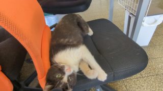 新入園児譲渡会の裏側で… あんみつさん大フィーバー♪この椅子は普段ちゃこさんが好んで使っている椅子です。ちゃこさんが譲渡会に出かけていないもんだからあんみつさんは飛び乗ってスリスリして大はしゃぎ。自分の匂いをたくさんつけておいてちゃこさんと仲良くなりたいんだって(^... 2025.09.08新入園児