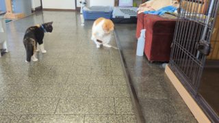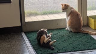 新入園児お近づきになりたい子とそうでない子 ちゃこもあんみつも玄関マットがお好き。あんみつが玄関マットにいる時にちゃこが寄って行くことはありませんが、このようにちゃこさんが先に玄関マットにいる時にあんみつが寄って行くことは日常茶飯事。最近は背中を向けてそーっと、少しずつ距離を縮めてい... 2025.09.30新入園児預かりさん日記